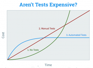 Az előző bekezdésben írtuk pont, hogy az automatizált tesztek igénylik eleinte a legnagyobb befektetést munkaórákban, ezért rövidtávon hiába várnánk tőle, hogy csökkenti a ráfordításokat. Ez az előny csak a későbbiekben, közép-, és hosszútávon fog érvényesülni.